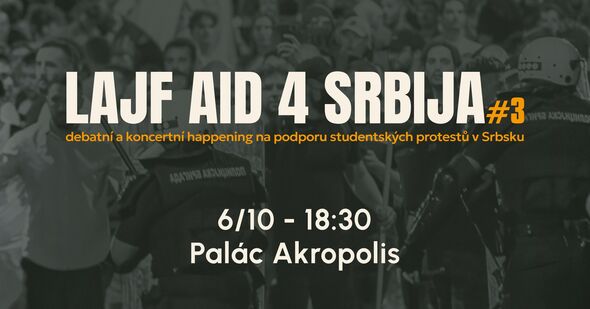 info Debatní a koncertní happening a charitativní akce na podporu studentských protestů v Srbsku. KOIKOI, TooT Ensemble, MMNK. Zajímá vás, co se zrovna děje v Srbsku a máte slabost pro balkánské prvky v hudbě? Podstatou debatních a koncertních happeningů „Lajf Aid 4 Srbija“ je zejména podpořit osvětu a informovanost ohledně lokální situace v Srbsku, nabídnout sety umělkyň a umělců, kteří mají k Balkánu blízko původem nebo repertoárem a vyjádřit tak podporu studentským protestům. První akce proběhla 18. února 2025 v pražském prostoru Kampus Hybernská díky podpoře týmu SIMS – Studentská samospráva IMS. Vystoupila celá řada umělců (Nicholas Roy Arthofer, Mário Bihári, Mario Šeparović, Markéta Zdeňková & Džezvica) a proběhla také debata s novinářkou Magdalénou Fajtovou, která se na region bývalé Jugoslávie již řadu let zaměřuje a přináší průběžně reportáže i z protestů. Během 21. srpna 2025 umožnila Čítárna Unijazz v Praze připravit „Lajf Aid 4 Srbija #2“, pro který si našel čas ještě větší počet odborníků. O aktuální situaci jsme hovořili s Veronikou Němcovou (Otvorená Kultúra!), Katarinou Vojnović (ex-Al Jazeera Balkans), Mladenem Savatovićem (N1) a Tobiášem Wágnerem (ex-Revue Prostor). Z umělců vystoupili Nicholas Roy Arthofer, Miloš Kunc, Der Šenster Gob a Yamaha Oriental. Pro 6. října 2025 se podařilo zařídit vystoupení srbské rockové kapely Koikoi, která nyní patří mezi to nejzajímavější na alternativní srbské scéně. Během večera také vystoupí početné české uskupení TooT Ensemble, které má ve svém jádru hned několik umělců, kteří mají praxi primárně s jazzem, ale zde tvoří spíše epickou party Balkan show a brněnští MMNK. Před koncerty proběhne debata s Markem Grabežem, kapelníkem a zpěvákem formace Koikoi a v neposlední řadě také respektovaným mladým hercem, který poskytne sondu do stavu alternativní kultury a represí režimu vůči umělcům. Komu pomůžeme? Od listopadu 2024 probíhají v Srbsku studentské protesty, ke kterým se připojila značná část široké veřejnosti. Od té doby proběhla celá řada převážně tichých piet věnovaným obětem neštěstí pádu části vlakového nádraží ve městě Novi Sad. Kromě Bělehradu upozorňují srbští studenti na svou nespokojenost s obrovskou státní korupcí i v dalších městech a také v zahraničí. Jsou v tom velice kreativní, a tak v průběhu letošního jara podnikli cestu na kolech z Nového Sadu do Štrasburku, následně pak i štafetový běh do Bruselu. Jejich cílem bylo oslovit evropské instituce (především Evropský parlament), na jejichž zástupce se obrátili s prosbou o morální podporu. Poklidné piety jsou rozháněny například zvukovými děly a v těchto dnech probíhají i masivní pouliční potyčky mezi demonstranty, policií, kriminálními živly a speciálními jednotkami. I proto jsou součástí akcí „Lajf Aid 4 Srbija“ pravidelně také debaty s odborníky, abychom širokou veřejnost o situaci kvalitně informovali. Akci podporují mimo jiné organizace Nadšením Nájem Nezaplatíš nebo Otvorená Kultura. Pro akci vzniká i kampaň na Donio.cz Koncert je uspořádán za podpory Liveurope – první celoevropskou iniciativou podporující koncertní kluby v jejich snaze pořádat koncerty začínajících evropských umělců. Projekt Liveurope je spolufinancován programem Evropské unie Kreativní Evropa. Akci pořádá Dan Sywala |