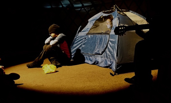 Uvnitř stanu je menší stan a uvnitř něho chlapec. Urazil dlouhou cestu, většinou na vlastní pěst. Může ukázat, co si vzal s sebou, vysvětlit, proč se na cestu vydal, může popsat, kudy cestoval, ale jak jeho příběh skončí, to říct zatím nemůže…